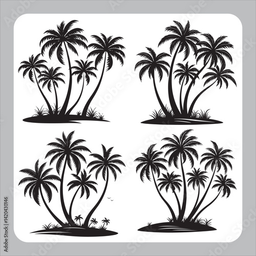Tropical palm tree silhouettes on a beach at sunset with ocean and summer vibes