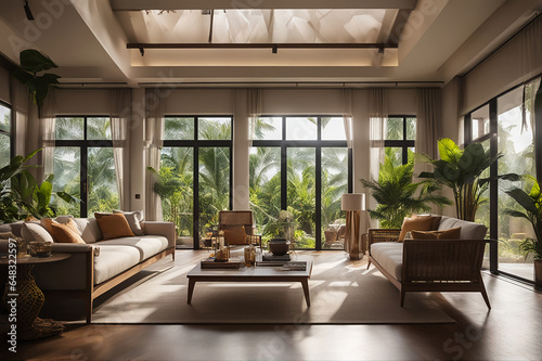 Tropical style living room, interior design