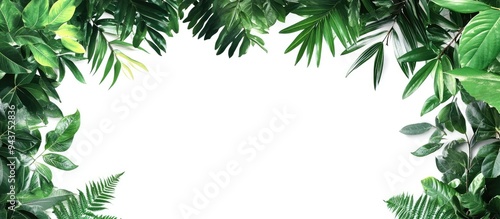 Tropical tree leaves with branches on a white isolated background create a green foliage backdrop. with copy space image. Place for adding text or design