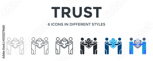 Trust Icon In Different Style Vector Illustration. Designed In Thin Line, Regular Line, Bold Line, Glyph, Color Fill, And Flat Style Can Be Used For Web