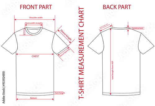 T-shirt measurement chart for CAD. T-shirt back & front details measurement for cad consumption.