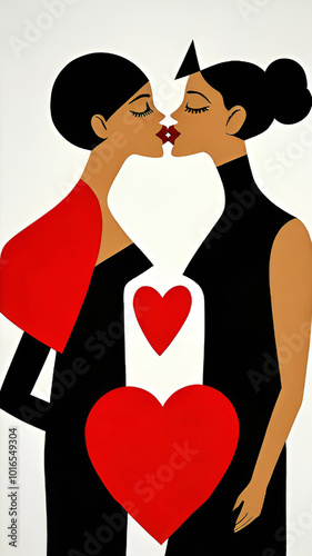 T-shirt print, print on the dress, fashion magazine cover, love, art, woman, fashion, beauty, model, silhouette, heart, couple, vector, illustration, head, profile, people, valentine, face, kiss, roma