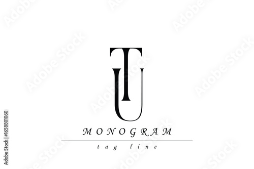 TU Initials Stylized Monogram Design Featuring Intertwined. Artistic representation of monogram initials creatively arranged and displayed.