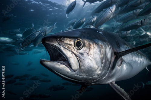 tuna in the sea attacks a flock of herring generated by AI