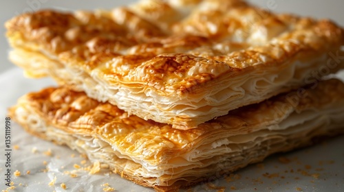 Tunisian brik pastry egg filling golden crispy triangle placed neatly on a white background zoomed out view
