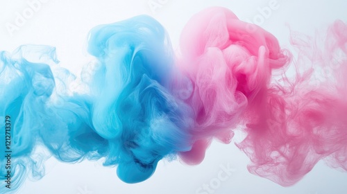 Turquoise and pink swirling abstract paint blending in an artistic fluid motion against a soft white background