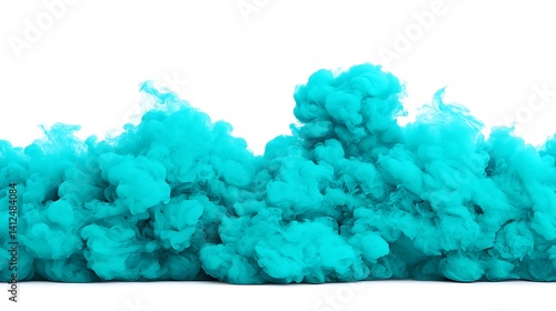 Turquoise Cloud Abstract: Swirling Colored Smoke Effect on White Background for Modern Design and Art Projects and Creative Visuals.