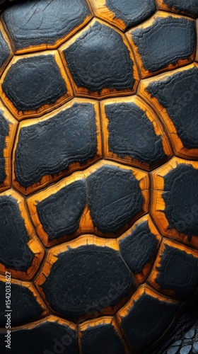Turtle shell texture with copy space. Close-up turtle pattern. Reptile shell design. Turtle scales. Realistic turtle shell. Turtle design texture. Detailed turtle shell close-up. Wild Animal texture.