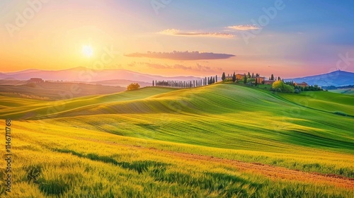 Tuscan Sunset: Rolling Hills and Golden Fields