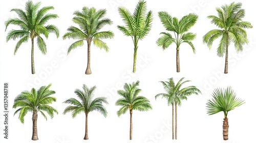 Twelve Diverse Palm Tree Varieties: A Botanical Illustration