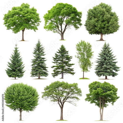 Twelve Green Trees Collection Isolated on Transparent Background, Nature, Forest, Plant, Trees, Green, Nature