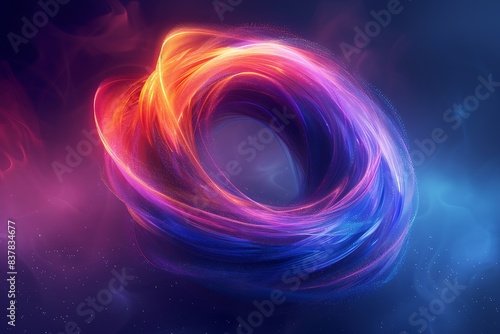 twisted and swirled 2 elements in a circle, artbord, color gradient and blue neon light app icon
