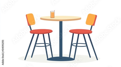 Two bar stools and a table with juice, interior scene, for restaurant design, stock image
