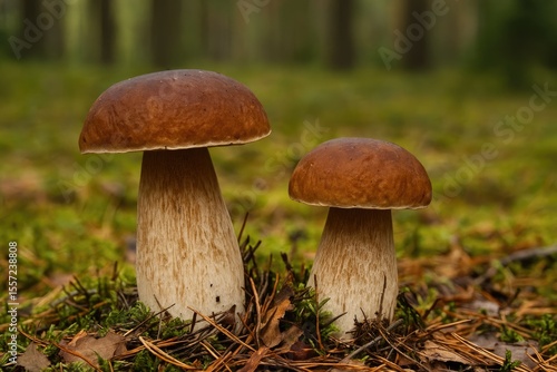 Two beautiful boletus mushrooms found in a Latvian forest during August
