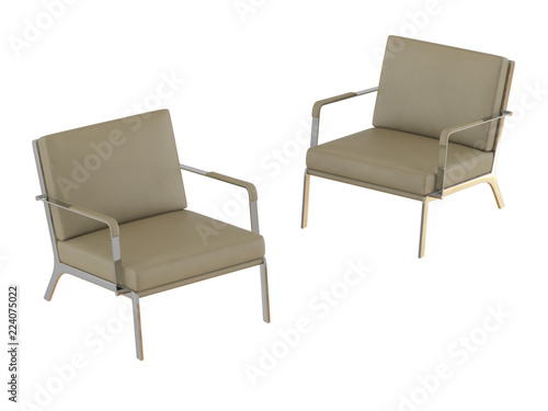Two Beige office armchair and pouf 3d rendering