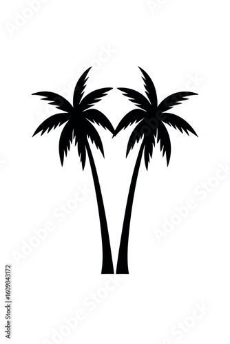 Two black silhouette palm trees on white background 1