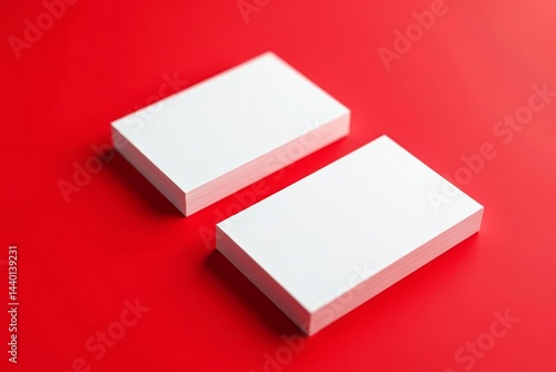 Two blank business cards on bright red background, minimalistic design, minimalistic, blank, red