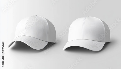 Two Blank White Baseball Caps Mockup for Design Presentation