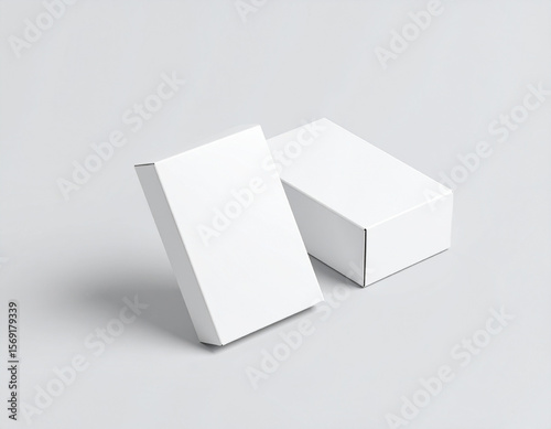 Two blank white rectangular boxes on a light gray background, showcasing packaging design possibilities.