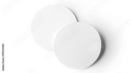 Two blank white round paper coasters on a white background. Mockup and product display concept.