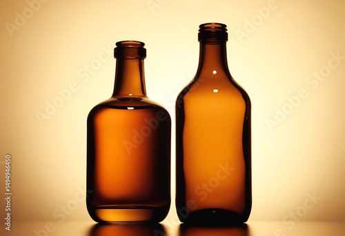 Two Brown Bottles Two exquisitely crafted brown glass bottles stand side-by-side, their sleek forms illuminated with precision against a smooth background