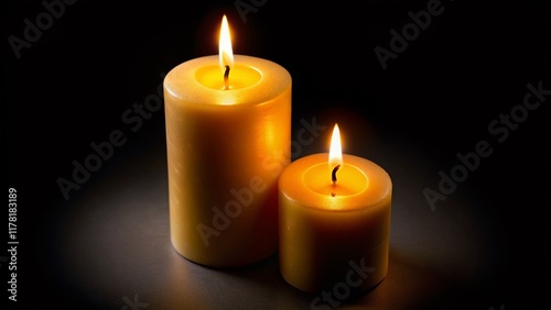 Two Burning Candles on Dark Background - Isolated Aerial View Stock Photo