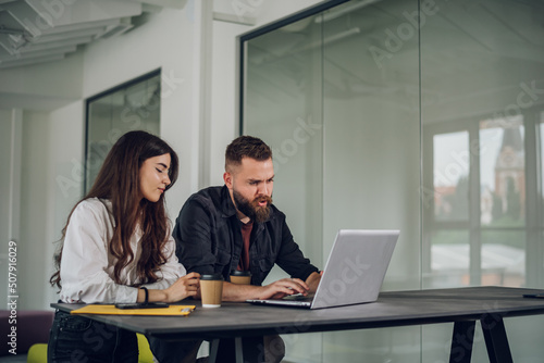 Two business colleagues having a meeting in the open space office