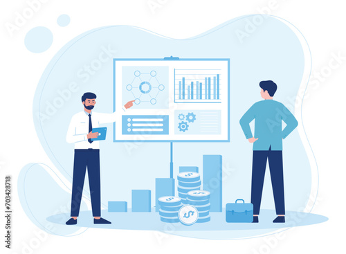 two business people analyzing company data or graphs on a white board concept flat illustration