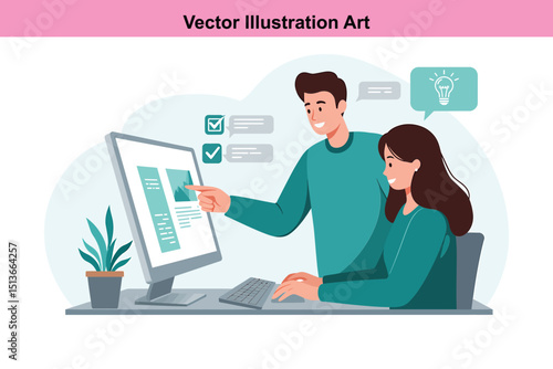 Two Colleagues Collaborating on a Project Discussing Ideas and Tasks at the Office