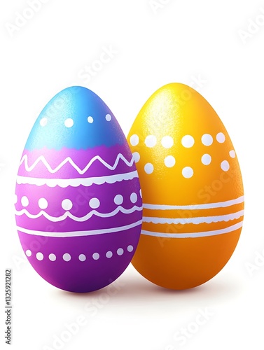 Two colorful easter eggs displayed together isolated on a white background for spring celebrations and festive decor