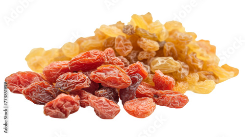 Two contrasting piles of raisins sit side by side, showcasing the variety and abundance of this dried fruit