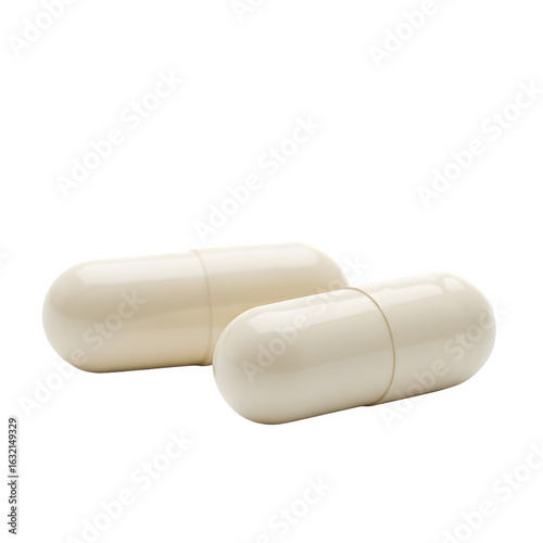 Two cream-colored capsules, isolated.