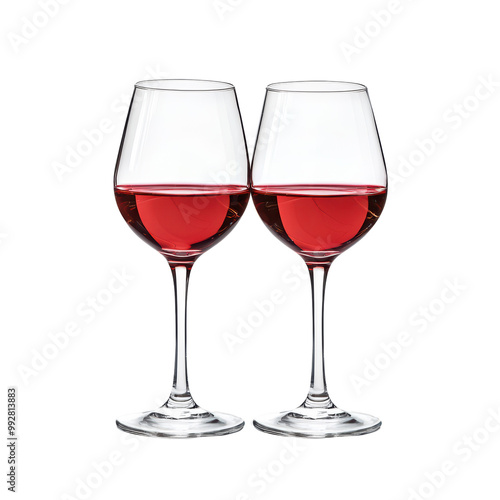 Two Elegant Wine Glasses Filled with Red Wine Isolated on a Transparent Background