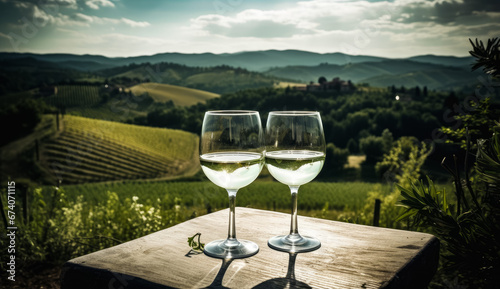 Two Elegant Wine Glasses on a Rustic Wooden Table