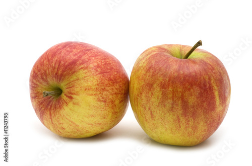 two fresh red apples on white background