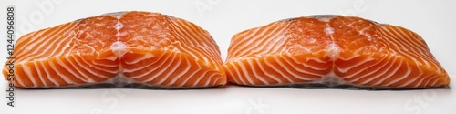Two fresh salmon fillets on a white background