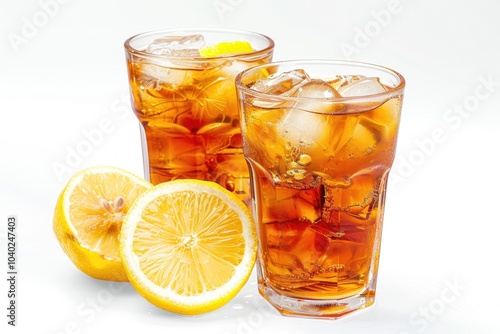 Two glasses of refreshing iced tea with a slice of lemon for added flavor