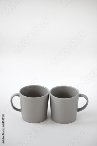 two grey cups in the studio on a white background