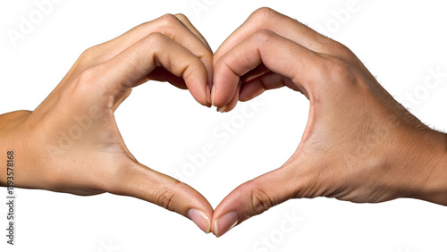 Two human hands forming the shape of a heart against a plain black background. The hands are well-groomed, with fingers gracefully curved to create a symmetrical heart outline. The skin has a natural