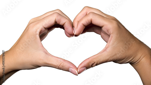 Two human hands forming the shape of a heart against a plain black background. The hands are well-groomed, with fingers gracefully curved to create a symmetrical heart outline. The skin has a natural