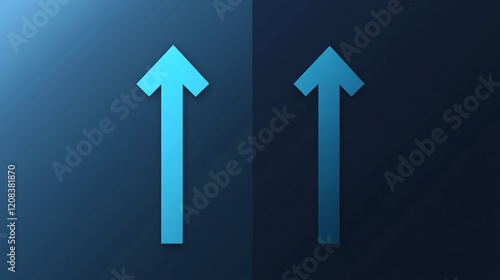 two identical blue arrows pointing upward with gradient tones on split light and dark backgrounds for symmetry