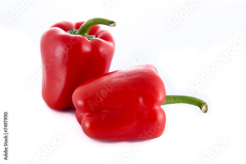 Two isolated red peppers