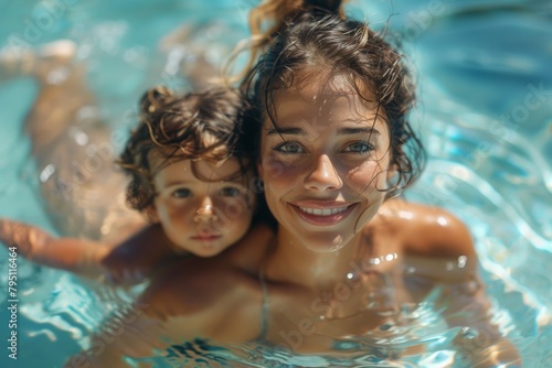 Two kids immersed in clear, sparkling pool water, showcasing joy and the essence of summer fun with water glistening around