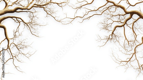 Two leafless golden tree branches creating a frame on a white background, perfect for inserting text or images