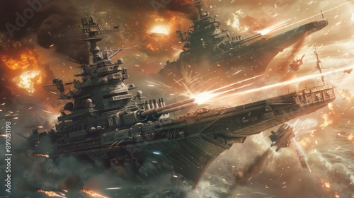 Two massive capital ships clashing with energy cannons and missile barrages.