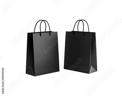 Two Matte Black Shopping Bags with Twisted Rope Handles Angled View