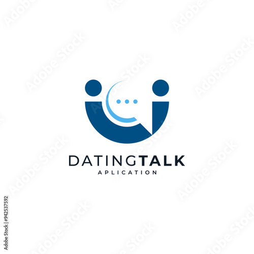 two people chatting and a dialog balloon for a social media chat and communication app logo