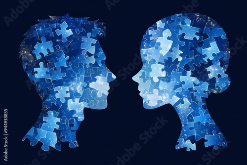 Two profiles with starry space replacing their brains visualizing cosmic intelligence and boundless thoughts