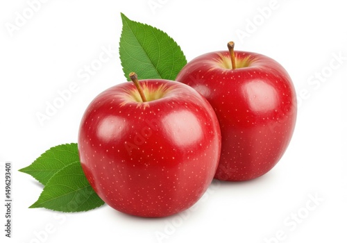 Two red apples with leaves isolated on white background