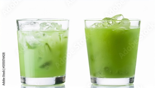 two refreshing green drinks with ice, perfect for a hot day. One appears milky, while the other is vibrant, offering a choice of refreshment
